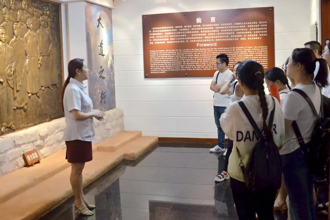 在“浙江辛亥革命紀念館”參觀時認真聽講