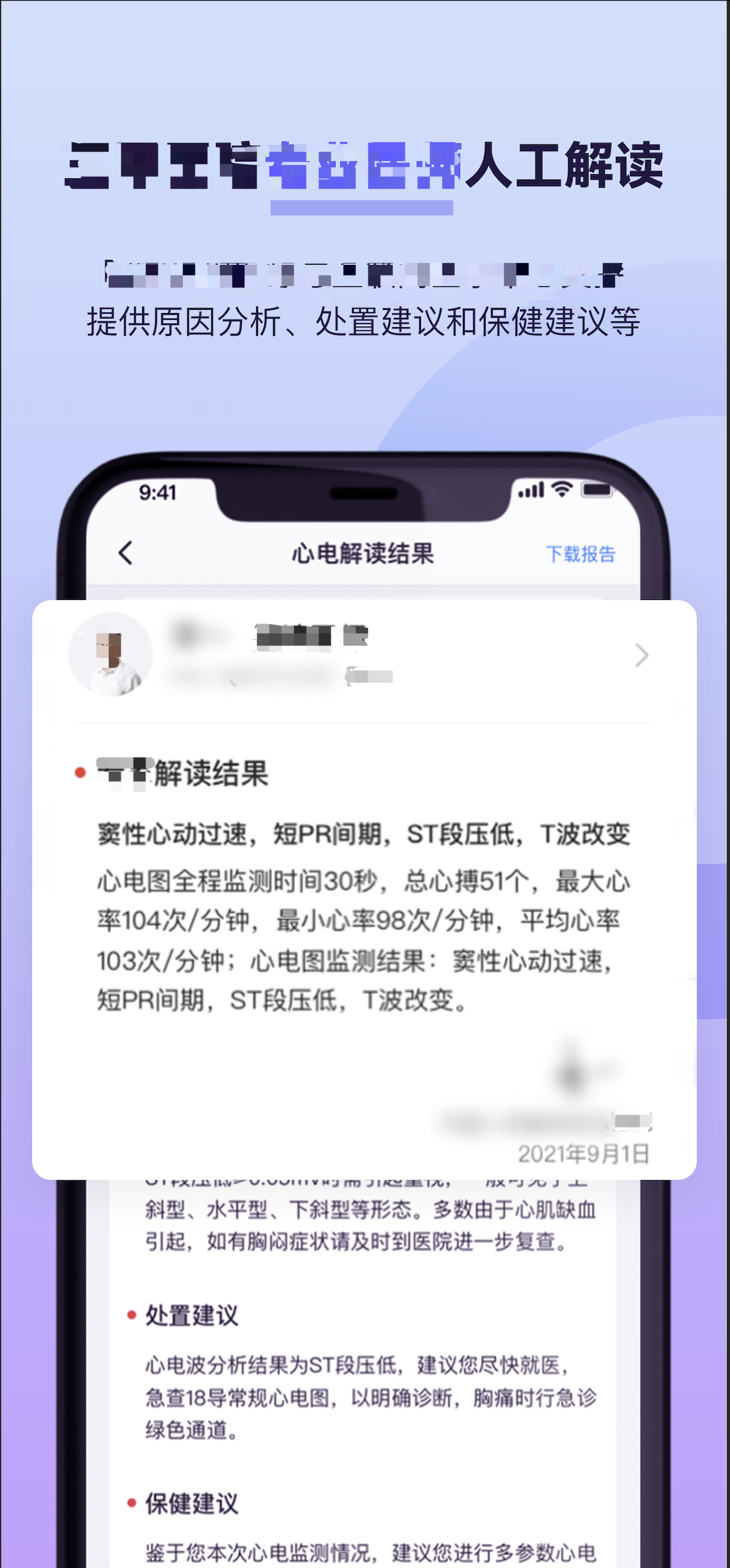 針對Apple Watch測量的心電圖,可以提供專業(yè)人工簽名的心電解讀服務,可以給出專業(yè)人工解讀結果、原因分析、處置建議、保健建議等多種專業(yè)人工服務。