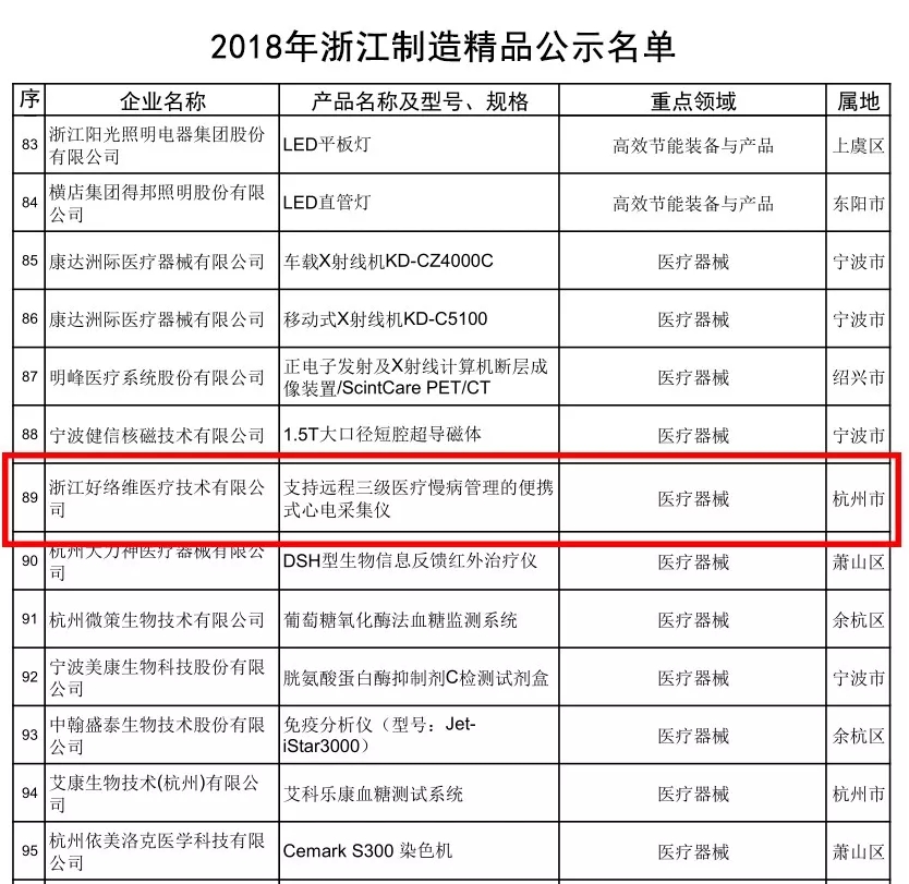 好絡(luò)維憑借卓越的技術(shù)研發(fā)能力以及智慧醫(yī)療行業(yè)內(nèi)的突出成績(jī),“支持遠(yuǎn)程三級(jí)醫(yī)療慢病管理的便攜式心電采集儀(TE-9000Y)”成功上榜“浙江制造精品”的醫(yī)療器械領(lǐng)域,成為推進(jìn)“浙江制造精品”工程的排頭兵。